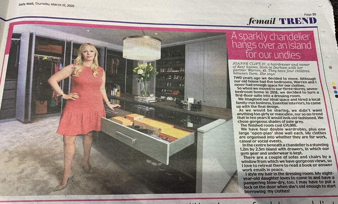 We are feeling very proud in the office today. Our lovely client Joanne and her gorgeous dressing room has been featured in the Daily Mail newspaper.